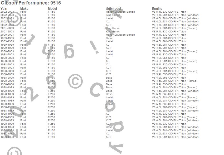 Below is an abreviated list of applications for the Cat Back Super Truck Exhaust.