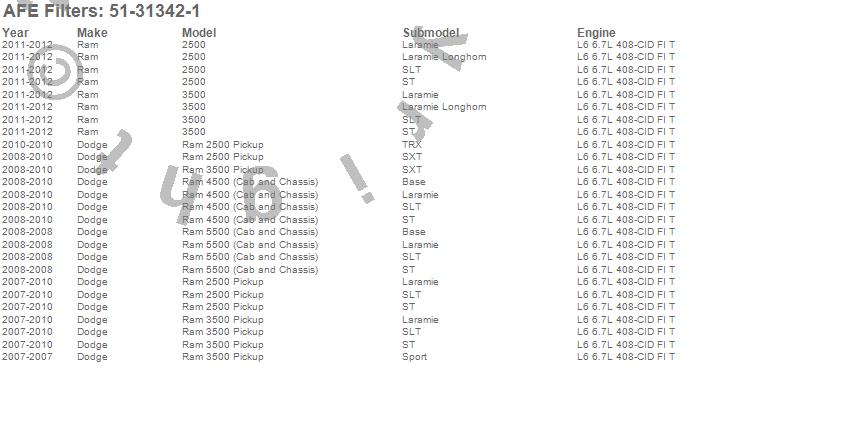 Below is an abreviated list of applications for the MagnumFORCE Pro Dry S Stage-2 Intake System.