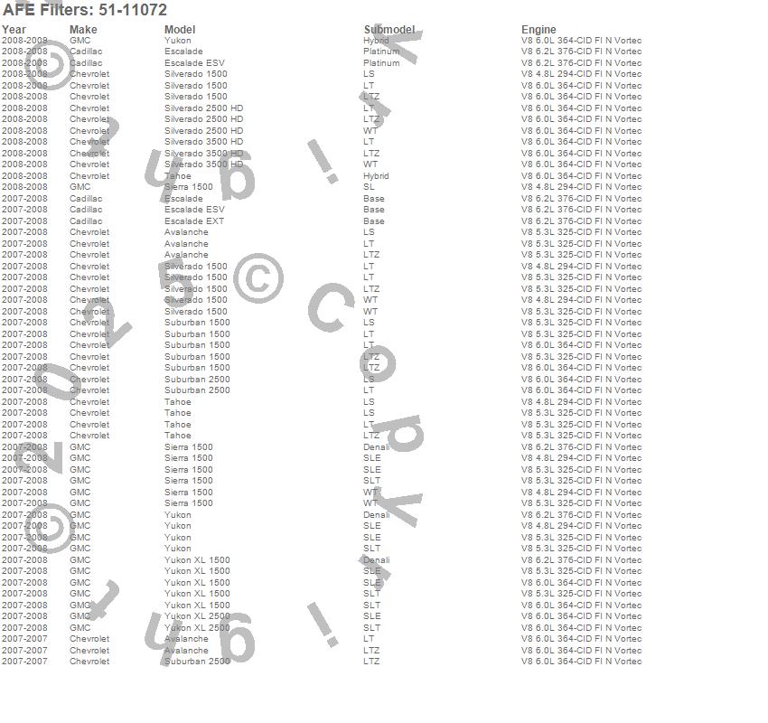Below is an abreviated list of applications for the MagnumFORCE Pro Dry S Stage-2 Intake System.