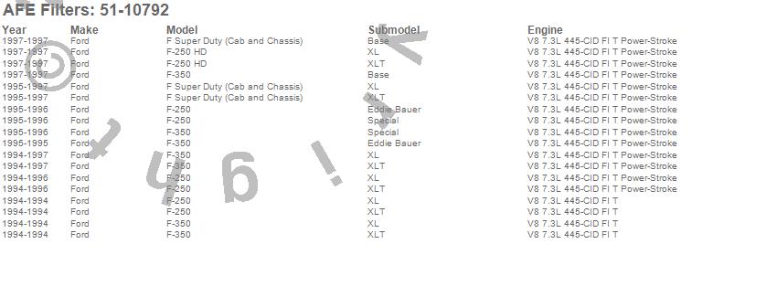 Below is an abreviated list of applications for the MagnumFORCE Pro Dry S Stage-2 Intake System.