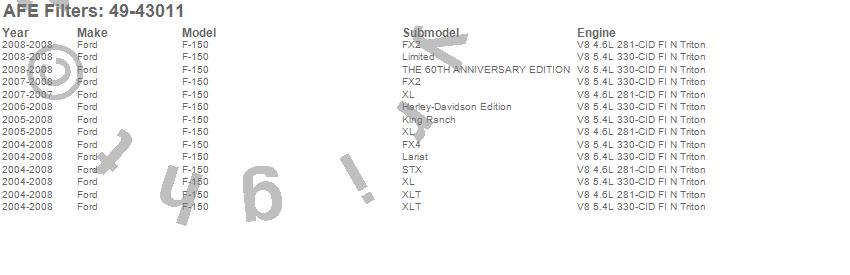 Advanced Flow Engineering, Inc. (aFe) produces high flow, high performance air filters & intake systems for the automotive industry. Founded in April, 1999, aFe was created to address an obvious need in the automotive aftermarket industry: a lack of choice for a high performance aftermarket air filter. We are a team of engineers, machinists, production and sales people who believe in the product we design. We each have years of experience in our respective positions and together work to ensure that we have the best product on the market. Our purpose was not just to be another vendor that offers air filters, we chose to pay attention to those finer details that set an aFe filter apart from the competition. We currently offer aftermarket air filters for passenger cars, light trucks and SUV's. We also have many applications for round racing and universal clamp-on filters. To find your particular application, please use our new search engines. If you do not see your particular application listed, please contact us.