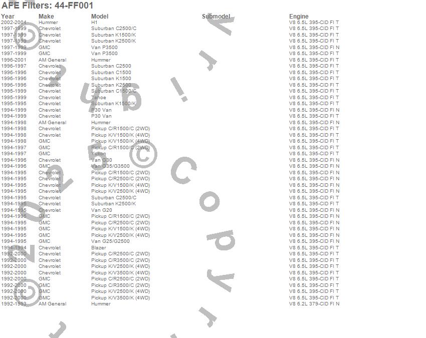 Below is an abreviated list of applications for the Pro-GUARD D2 Fuel Fluid Filter.