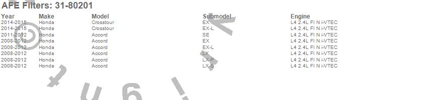 Below is an abreviated list of applications for the MagnumFLOW OE Replacement PRO DRY S Air Filter.