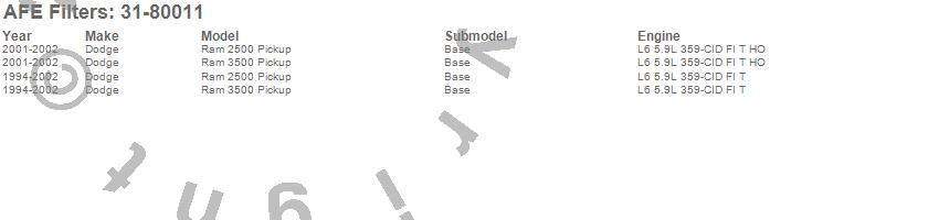 Below is an abreviated list of applications for the MagnumFLOW OE Replacement PRO DRY S Air Filter.