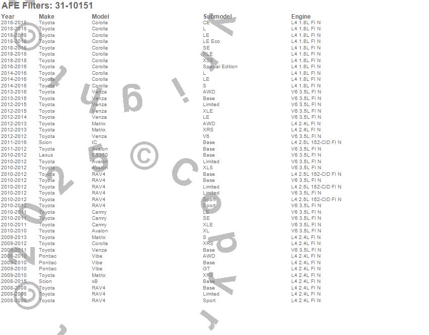 Advanced Flow Engineering, Inc. (aFe) produces high flow, high performance air filters & intake systems for the automotive industry. Founded in April, 1999, aFe was created to address an obvious need in the automotive aftermarket industry: a lack of choice for a high performance aftermarket air filter. We are a team of engineers, machinists, production and sales people who believe in the product we design. We each have years of experience in our respective positions and together work to ensure that we have the best product on the market. Our purpose was not just to be another vendor that offers air filters, we chose to pay attention to those finer details that set an aFe filter apart from the competition. We currently offer aftermarket air filters for passenger cars, light trucks and SUV's. We also have many applications for round racing and universal clamp-on filters. To find your particular application, please use our new search engines. If you do not see your particular application listed, please contact us.
