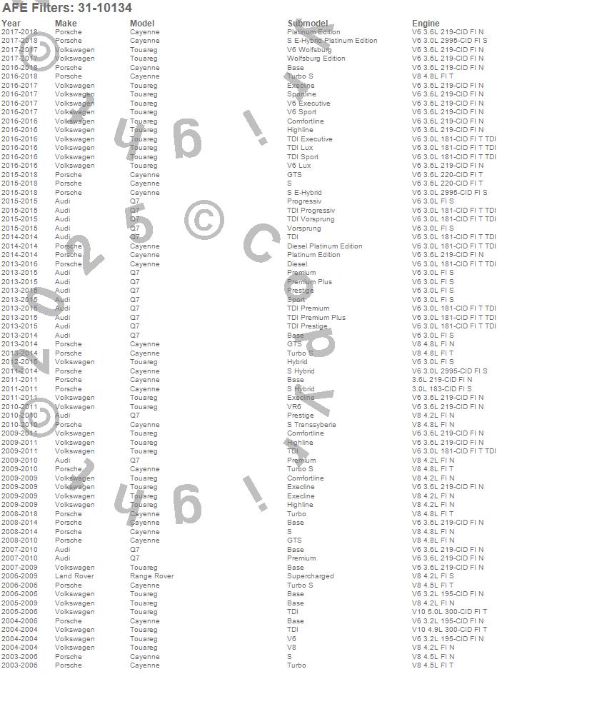 Below is an abreviated list of applications for the MagnumFLOW OE Replacement PRO DRY S Air Filter.