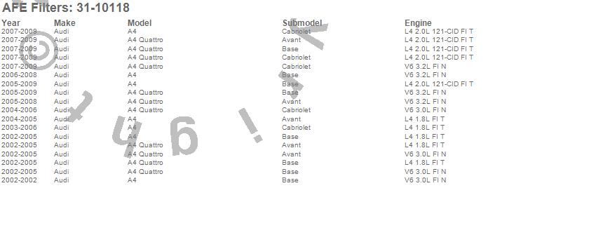 Advanced Flow Engineering, Inc. (aFe) produces high flow, high performance air filters & intake systems for the automotive industry. Founded in April, 1999, aFe was created to address an obvious need in the automotive aftermarket industry: a lack of choice for a high performance aftermarket air filter. We are a team of engineers, machinists, production and sales people who believe in the product we design. We each have years of experience in our respective positions and together work to ensure that we have the best product on the market. Our purpose was not just to be another vendor that offers air filters, we chose to pay attention to those finer details that set an aFe filter apart from the competition. We currently offer aftermarket air filters for passenger cars, light trucks and SUV's. We also have many applications for round racing and universal clamp-on filters. To find your particular application, please use our new search engines. If you do not see your particular application listed, please contact us.