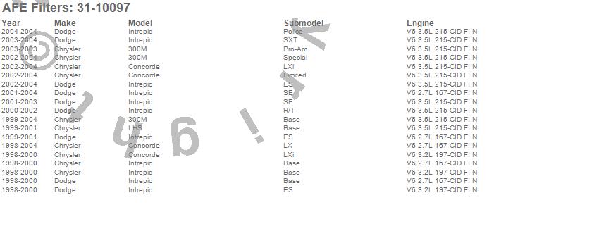 Below is an abreviated list of applications for the MagnumFLOW OE Replacement PRO DRY S Air Filter.