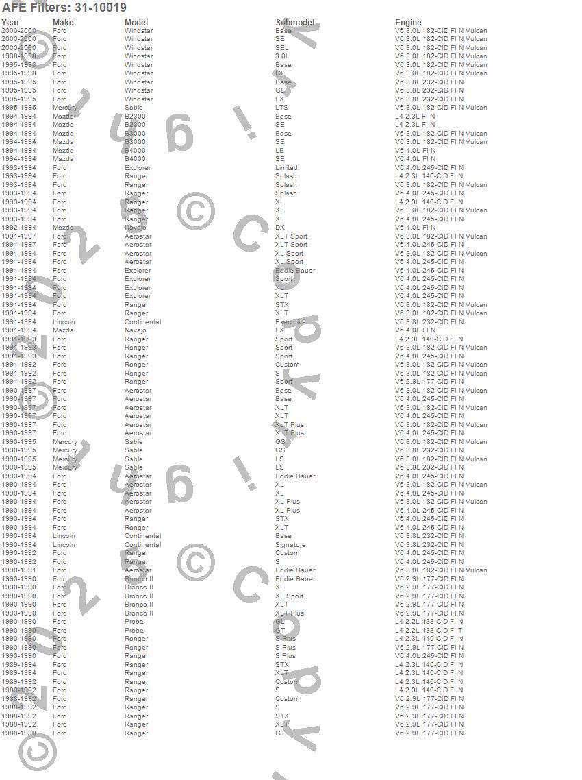 Aerostar, B2300, B3000, B4000, Bronco II, Continental, Explorer, Navajo, Probe, Ranger, Sable, Taurus, Windstar, Ford, Lincoln, Mazda, Mercury, 2000, 1999, 1998 more…