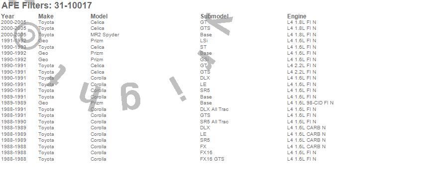Below is an abreviated list of applications for the MagnumFLOW OE Replacement PRO DRY S Air Filter.