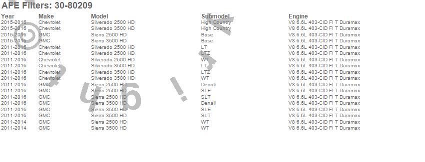 Below is an abreviated list of applications for the MagnumFLOW OE Replacement PRO 5R Air Filter.