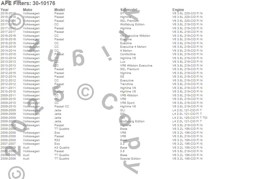 Below is an abreviated list of applications for the MagnumFLOW OE Replacement PRO 5R Air Filter.