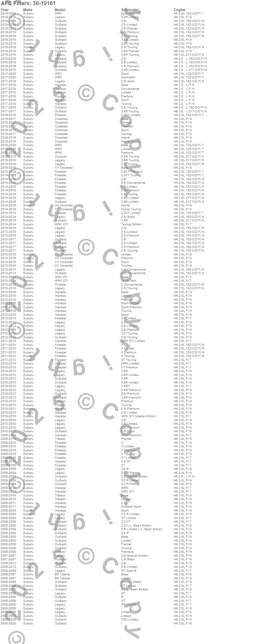 Below is an abreviated list of applications for the MagnumFLOW OE Replacement PRO 5R Air Filter.