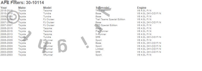 Below is an abreviated list of applications for the MagnumFLOW OE Replacement PRO 5R Air Filter.