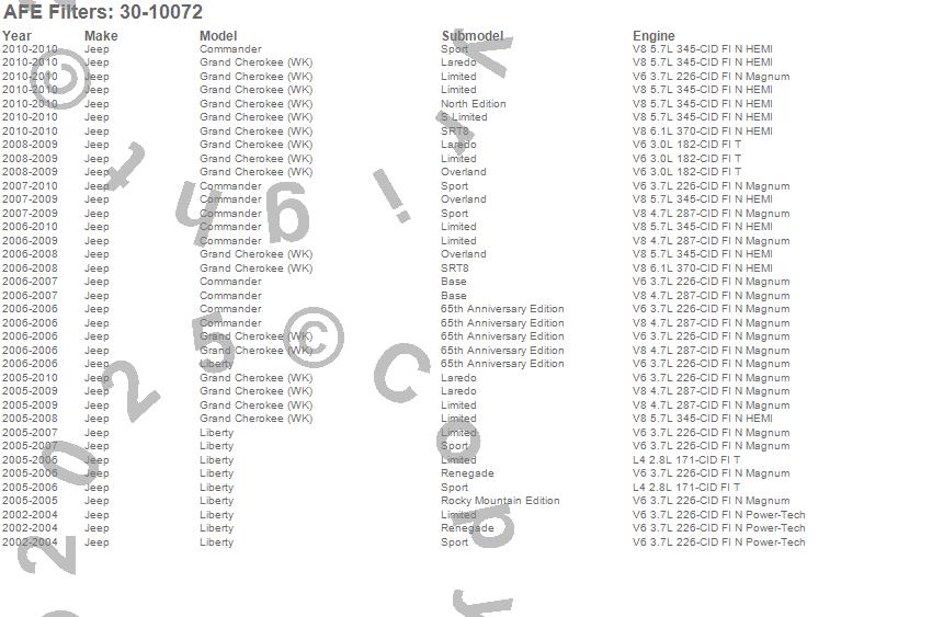 Below is an abreviated list of applications for the MagnumFLOW OE Replacement PRO 5R Air Filter.
