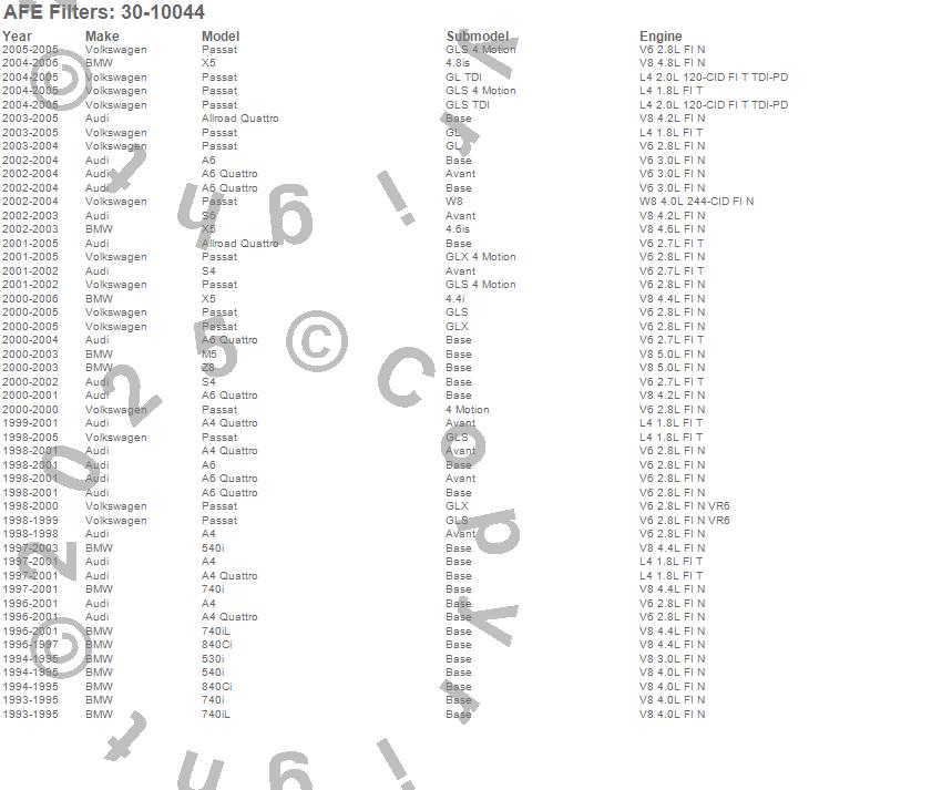 530i, 540i, 740i, 740iL, 840Ci, A4, A4 Quattro, A6, A6 Quattro, Allroad Quattro, M5, Passat, S4, S6, X5, Z8, Audi, BMW, Volkswagen, 2006 more…