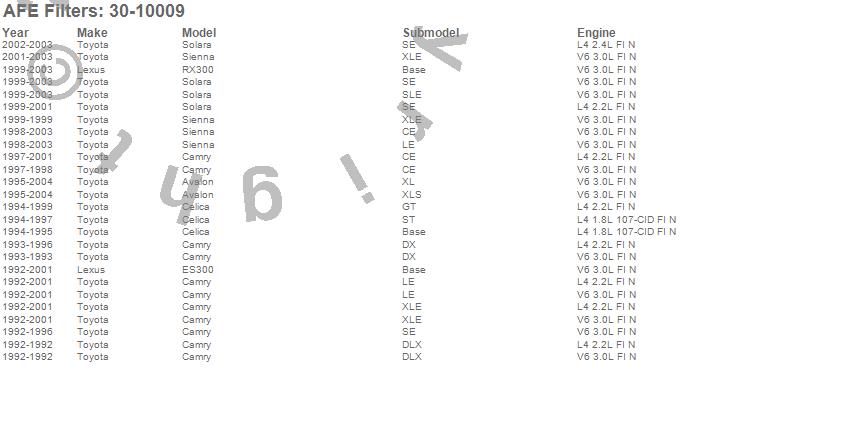 Below is an abreviated list of applications for the MagnumFLOW OE Replacement PRO 5R Air Filter.