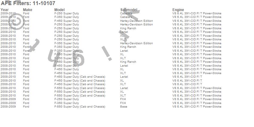 Below is an abreviated list of applications for the MagnumFLOW OE Replacement PRO DRY S Air Filter.