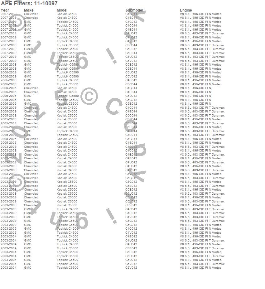 Below is an abreviated list of applications for the MagnumFLOW OE Replacement PRO DRY S Air Filter.