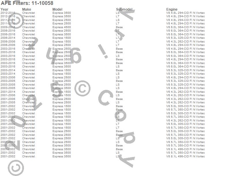 Below is an abreviated list of applications for the MagnumFLOW OE Replacement PRO DRY S Air Filter.
