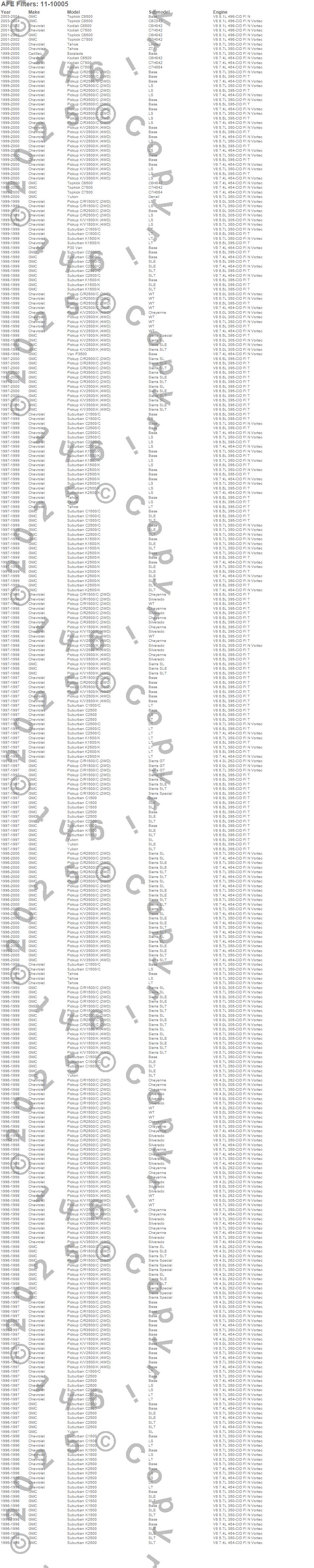 C10 Pickup, C1500 Pickup, C1500 Suburban, C20 Pickup, C2500 Pickup, C2500 Suburban, C30 Pickup, C3500 Pickup, Escalade, K10 Pickup, K1500 Pickup, K1500 Suburban, K20 Pickup, K2500 Pickup, K2500 Suburban, K30 Pickup, K3500 Pickup, P30 Van, P3500 Van, R10 Pickup more…