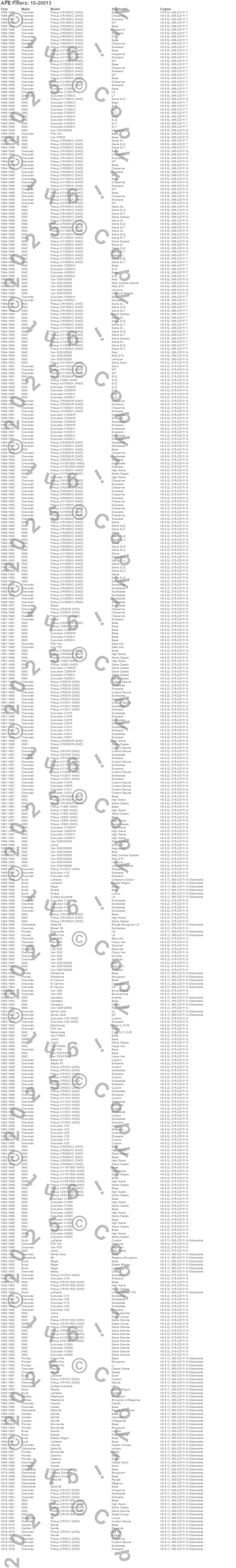 98, Blazer, Blazer K5, Bonneville, C10 Pickup, C10 Suburban, C15/C1500, C1500, C1500 Pickup, C1500 Suburban, C20 Pickup, C20 Suburban, C2500 Pickup, C2500 Suburban, C30 Pickup, C3500 Pickup, Caballero, Caprice, Catalina, Custom Cruiser more…