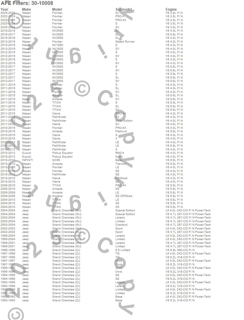 Below is an abreviated list of applications for the MagnumFLOW OE Replacement PRO 5R Air Filter.