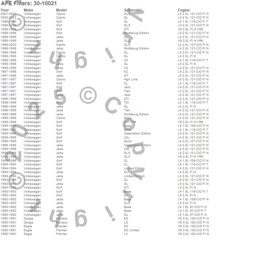 Below is an abreviated list of applications for the MagnumFLOW OE Replacement PRO 5R Air Filter.
