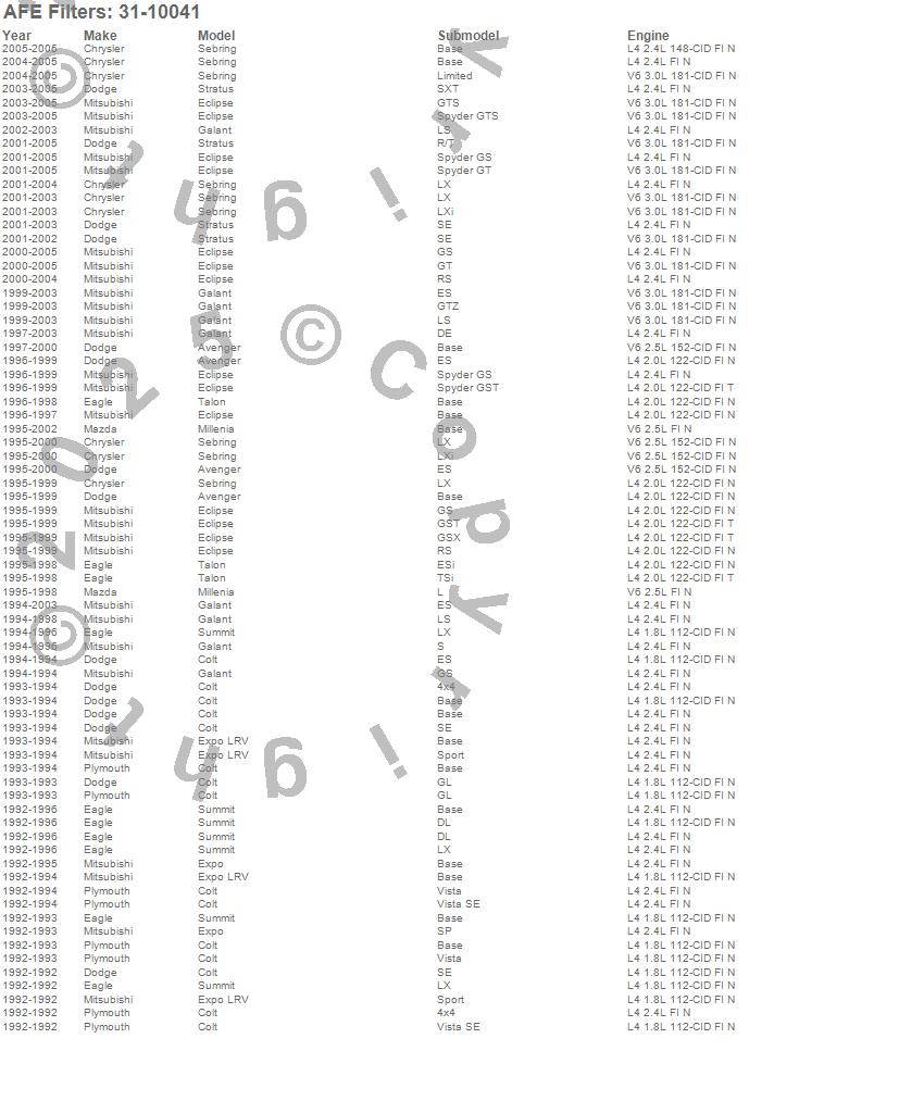 Below is an abreviated list of applications for the MagnumFLOW OE Replacement PRO DRY S Air Filter.
