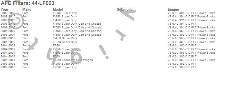 Below is an abreviated list of applications for the Pro-GUARD D2 Oil Fluid Filter.