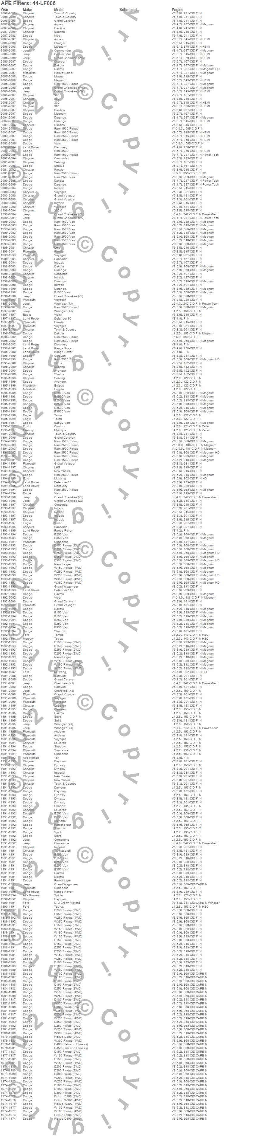 Below is an abreviated list of applications for the Pro-GUARD D2 Oil Fluid Filter.