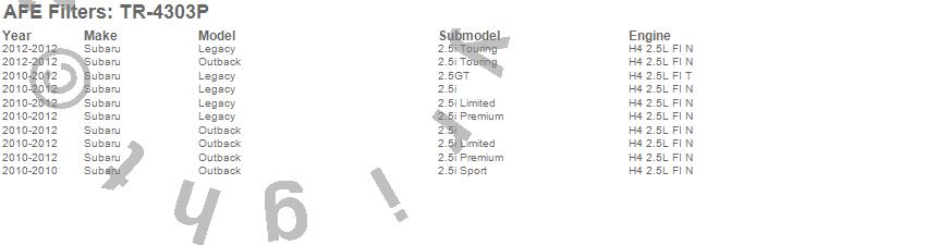 Below is an abreviated list of applications for the Takeda Stage-2 PRO DRY S Intake System.