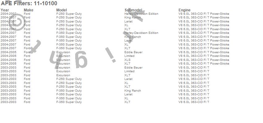 Below is an abreviated list of applications for the MagnumFLOW OE Replacement PRO DRY S Air Filter.