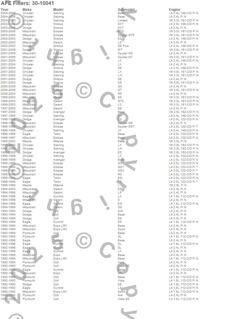 Below is an abreviated list of applications for the MagnumFLOW OE Replacement PRO 5R Air Filter.