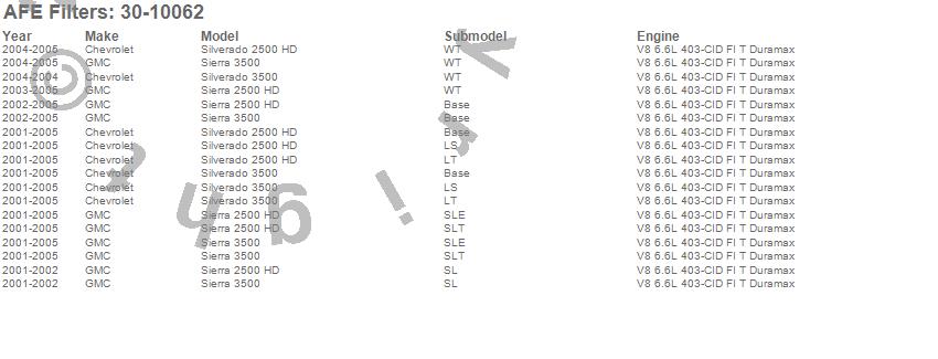 Below is an abreviated list of applications for the MagnumFLOW OE Replacement PRO 5R Air Filter.