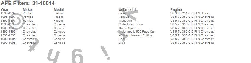 Below is an abreviated list of applications for the MagnumFLOW OE Replacement PRO DRY S Air Filter.