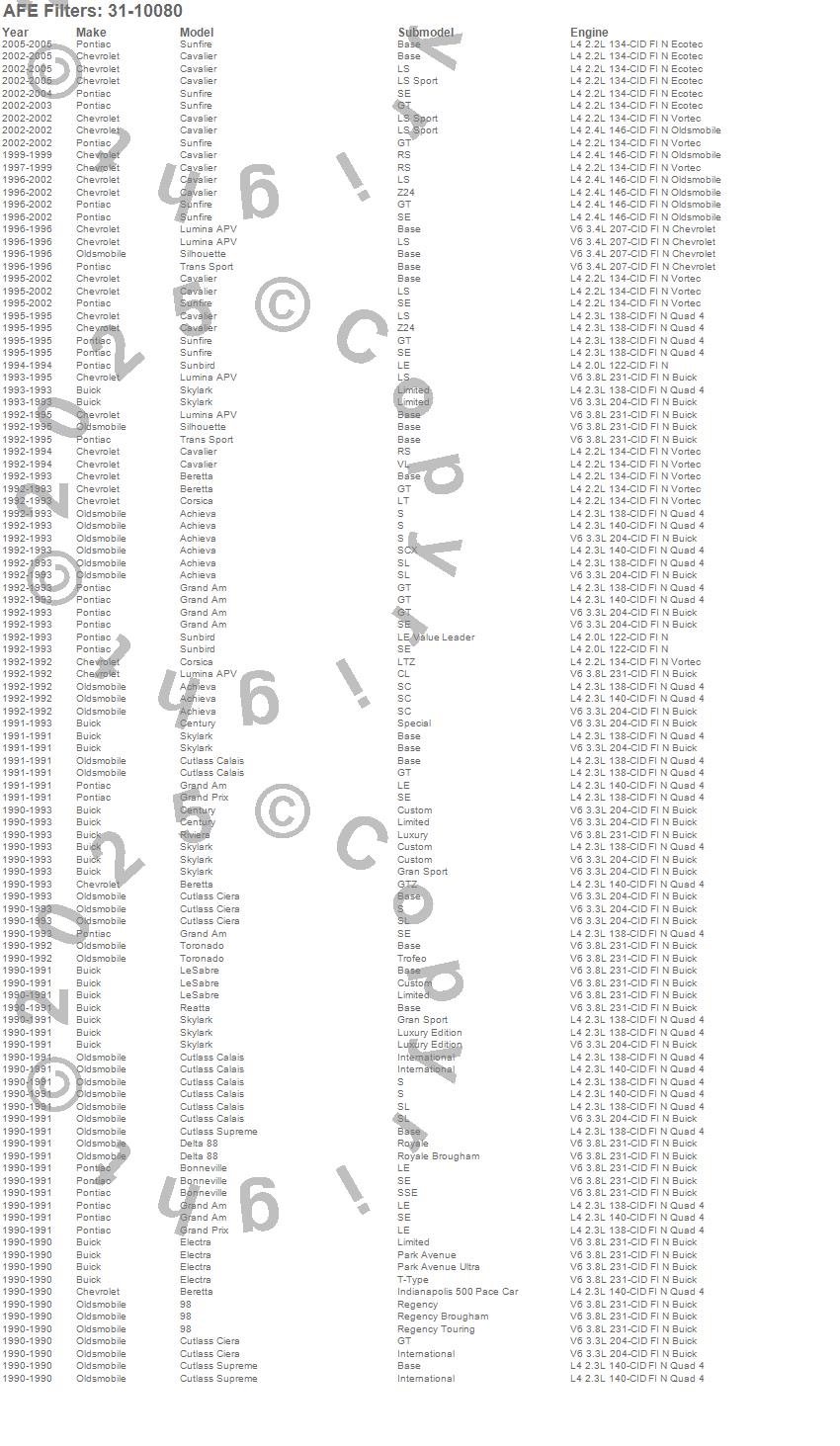 Below is an abreviated list of applications for the MagnumFLOW OE Replacement PRO DRY S Air Filter.