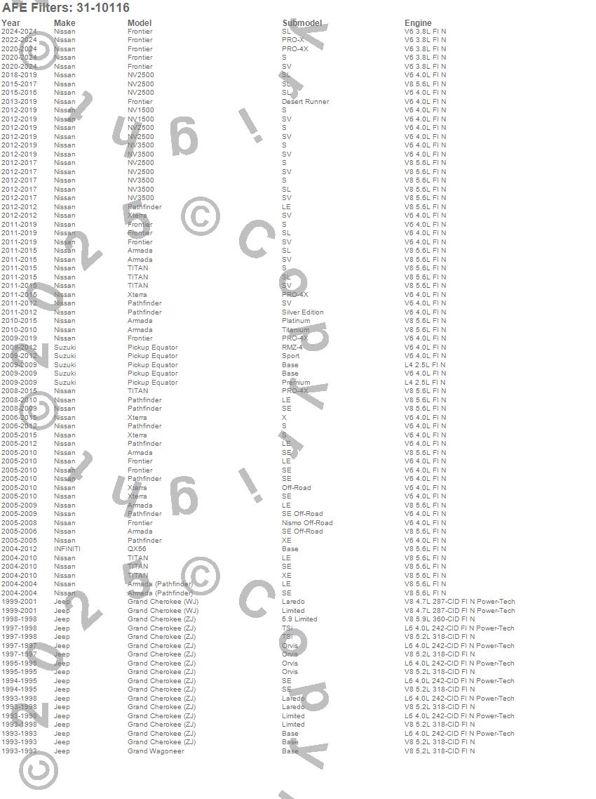 Below is an abreviated list of applications for the MagnumFLOW OE Replacement PRO DRY S Air Filter.