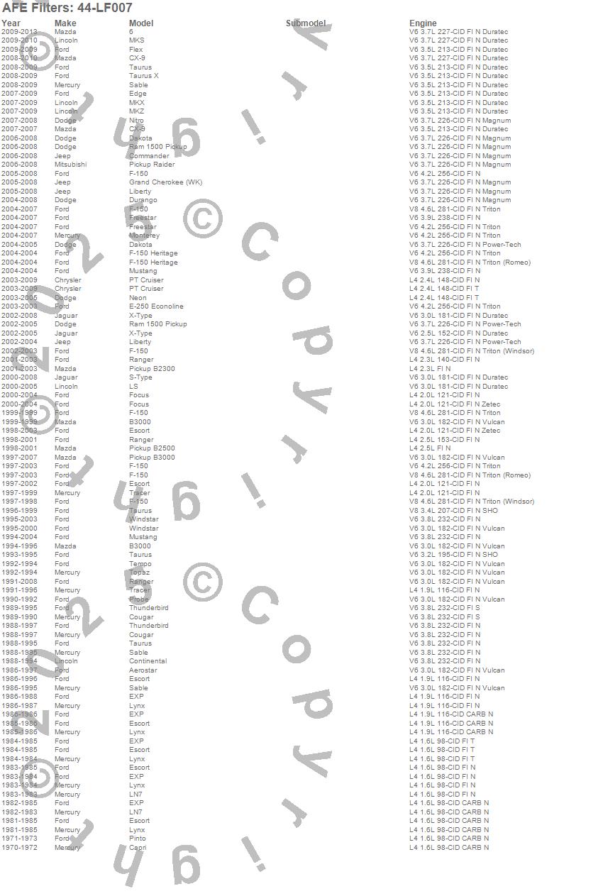 6, Aerostar, B2300, B2500, B3000, Commander, Continental, Cougar, CX-9, Dakota, Durango, Edge, Escort, F-150, F-150 Heritage, Flex, Focus, Freestar, Grand Cherokee (WK), Liberty more…