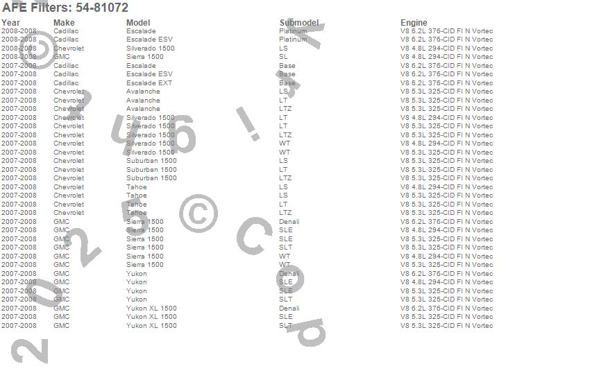 Avalanche, Escalade, Escalade ESV, Escalade EXT, Sierra 1500, Silverado 1500, Suburban 1500, Tahoe, Yukon, Yukon XL 1500, Cadillac, Chevrolet, GMC, 2008, 2007 more…