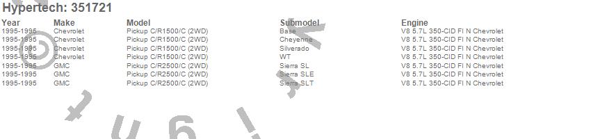 Below is an abreviated list of applications for the Street Runner Power Chip.