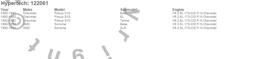 Below is an abreviated list of applications for the Street Runner Power Chip.