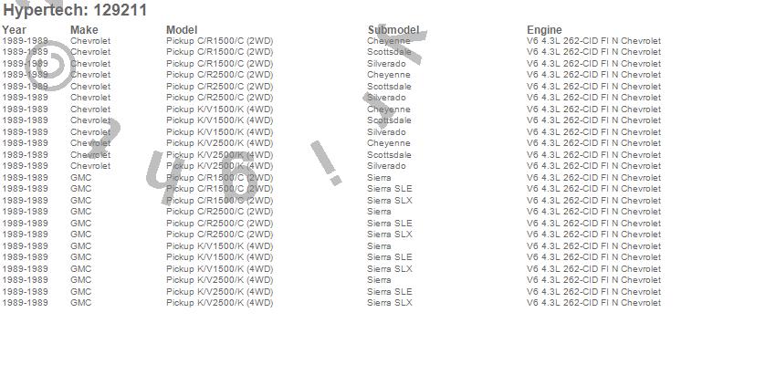 Below is an abreviated list of applications for the Street Runner Power Chip.
