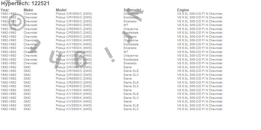 Below is an abreviated list of applications for the Street Runner Power Chip.