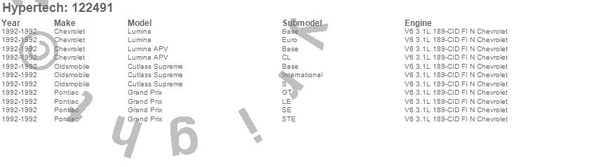 Below is an abreviated list of applications for the Street Runner Power Chip.