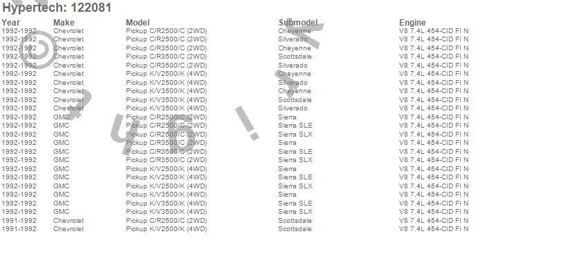 Below is an abreviated list of applications for the Street Runner Power Chip.