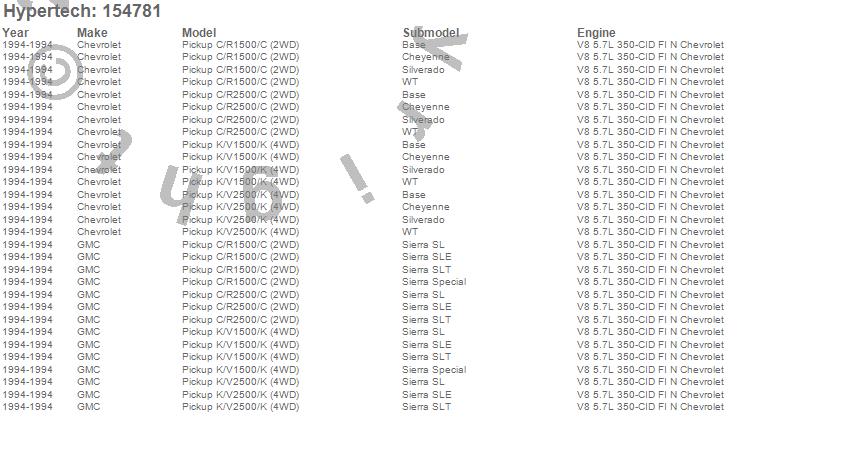 Below is an abreviated list of applications for the Street Runner Power Chip.
