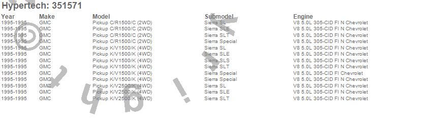 Below is an abreviated list of applications for the Street Runner Power Chip.