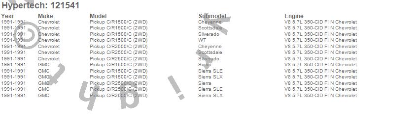 Below is an abreviated list of applications for the Street Runner Power Chip.