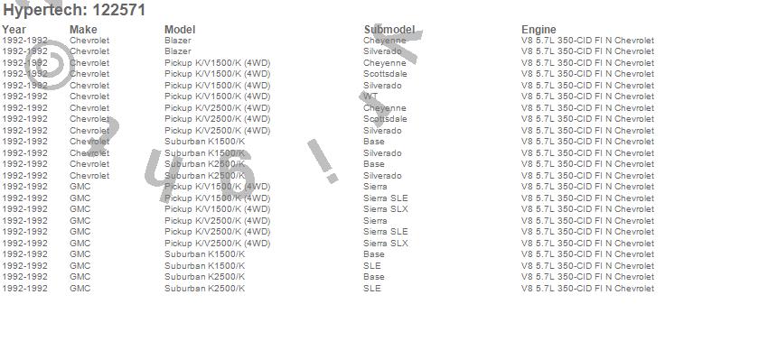 Below is an abreviated list of applications for the Street Runner Power Chip.